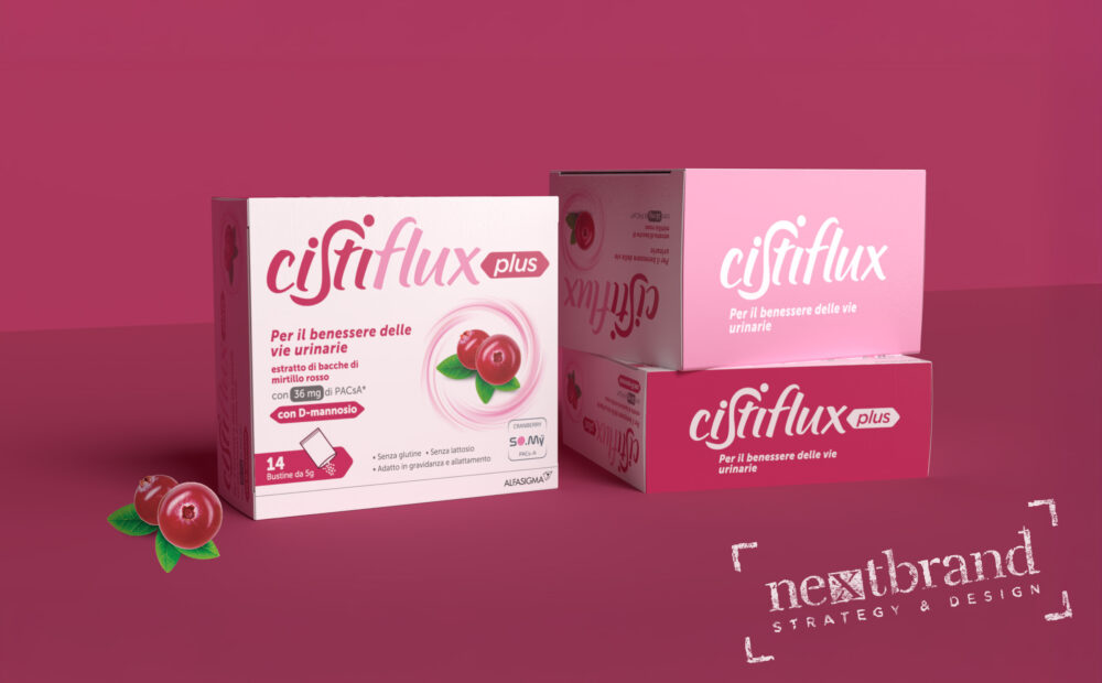 Nextbrand a fianco di Alfasigma per il restyling del pack di Cistiflux: un nuovo look per il benessere delle vie urinarie.
