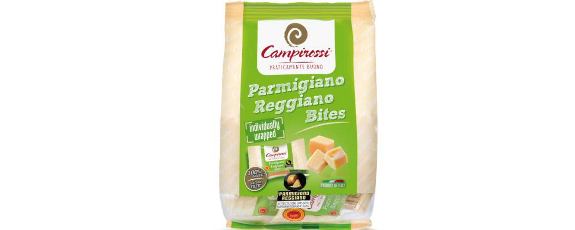 Il prodotto Campirossi che Dalter Alimentari ha introdotto in Sainsbury’s è una confezione Multipack da 90 grammi, che racchiude una decina di monoporzioni da circa 9 grammi di Parmigiano Reggiano stagionato 18 mesi. Ogni caramella di Parmigiano Reggiano è confezionata singolarmente: la grammatura – in assoluto tra le più ridotte disponibili sul mercato – è tale che il prodotto possa essere mangiato in un solo boccone. La confezione Multipack, con una grafica studiata appositamente per risultare di appeal per il consumatore inglese, garantisce la freschezza del formaggio come appena tagliato: la caramella, infatti, viene aperta all’occorrenza e subito consumata, senza sprechi. Il prodotto ha poi una forte connotazione healthy: questo sia perché il Parmigiano Reggiano è un alimento sano, gustoso e privo di conservanti, sia perché la monoporzione ha un apporto di sole 32 calorie. Proposto da Dalter Alimentari in chiave food-on-the-go, il Parmigiano Reggiano diventa uno snack ideale per spuntini rapidi e gustosi fuori casa.
