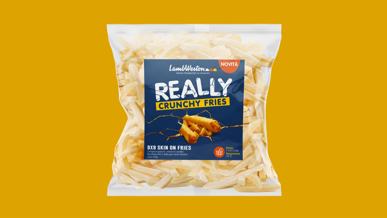 Il concept creativo aveva l’obiettivo di incuriosire e coinvolgere il cliente, facendogli vivere l’esperienza di prodotto a partire dai materiali promozionali. La finitura del flyer è stata studiata per riprodurre l’effetto sonoro del “crunch” della patatina quando viene morsicata. E il bordo è stato reso frastagliato per far toccare con mano la caratteristica irregolarità della superficie delle patatine Really Crunchy.